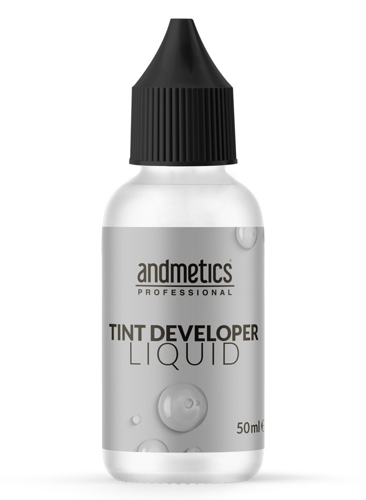 Die andmetics professional Brow-& Lashtints aktivierst du mit einem wasserstoffhaltigen Entwickler. Diesen erhältst du in zwei Varianten: flüssig oder cremig.
